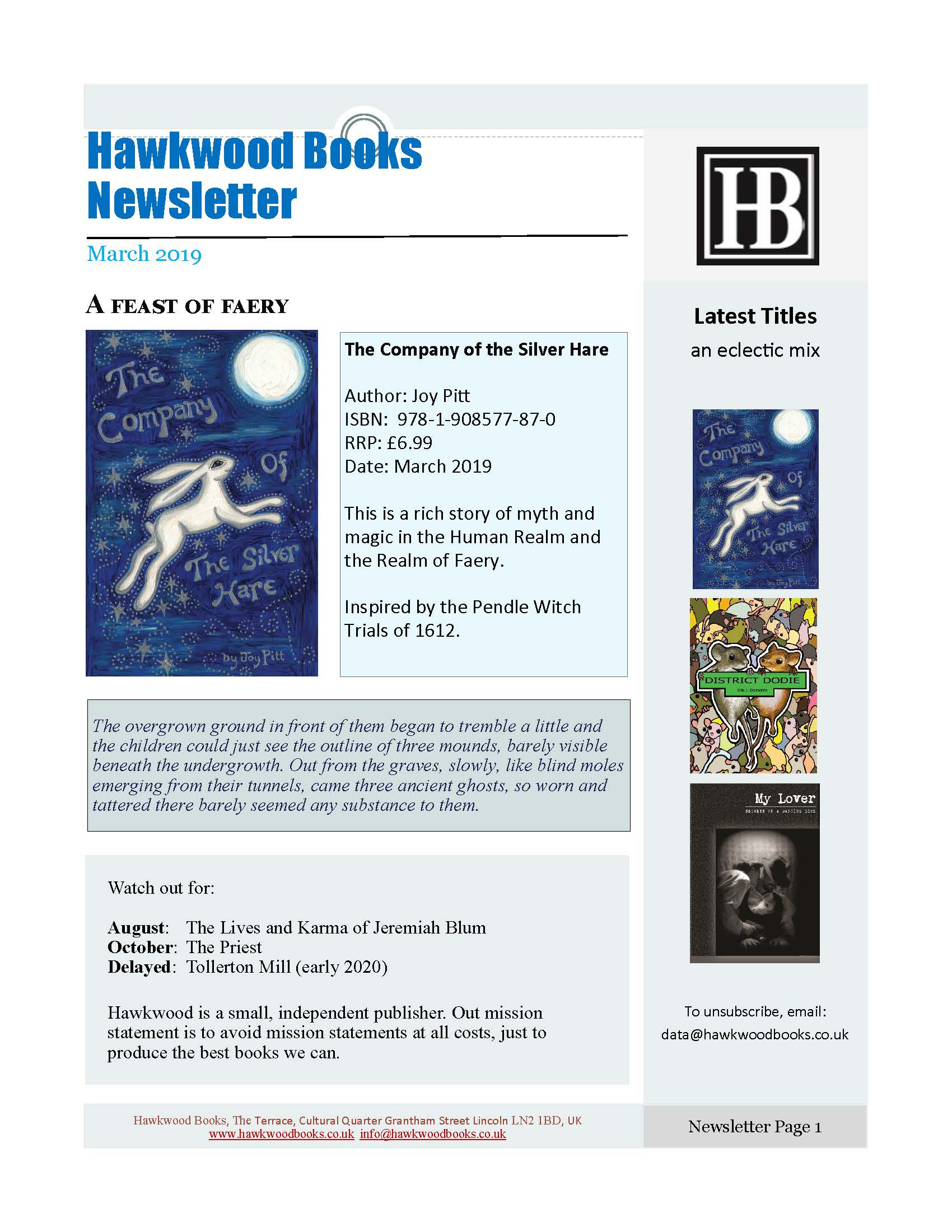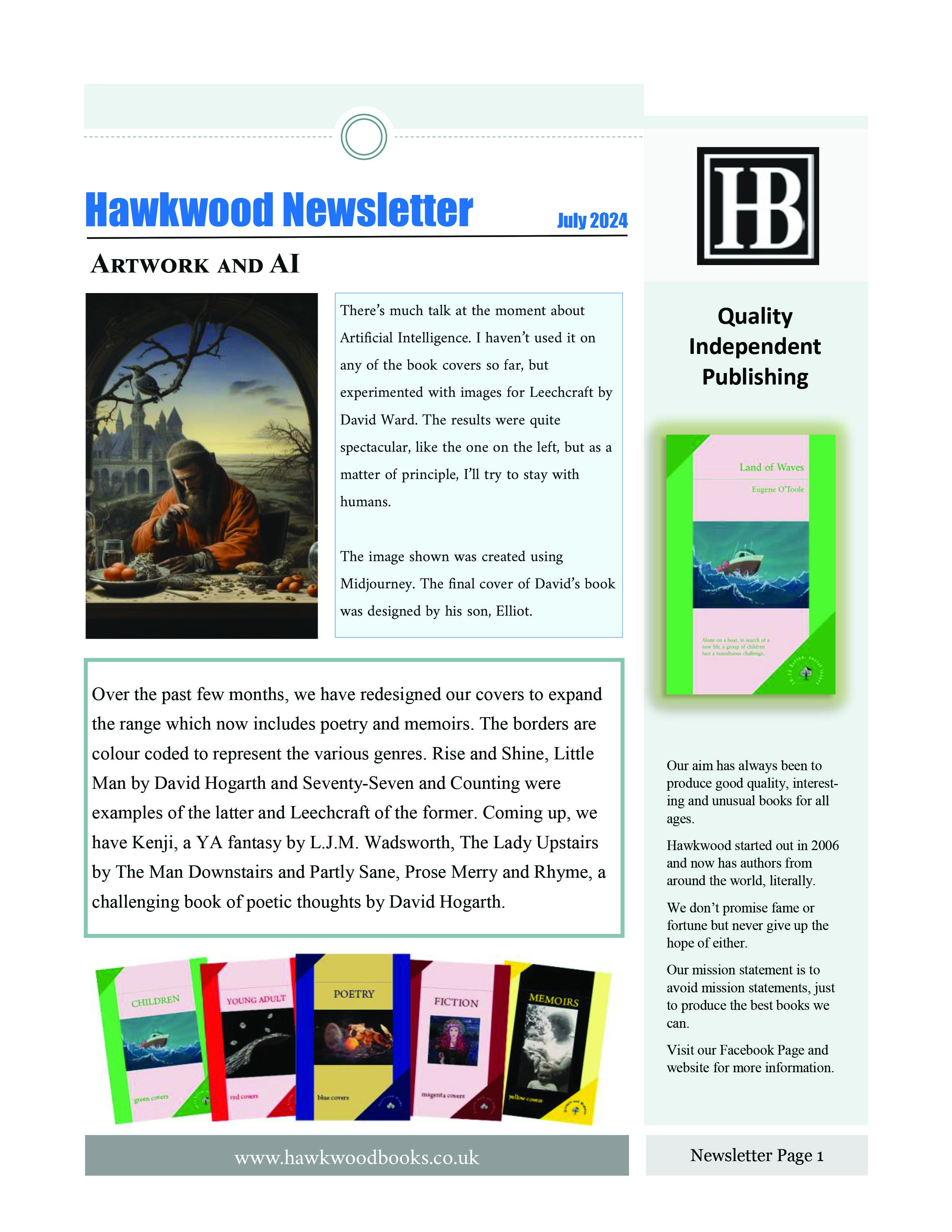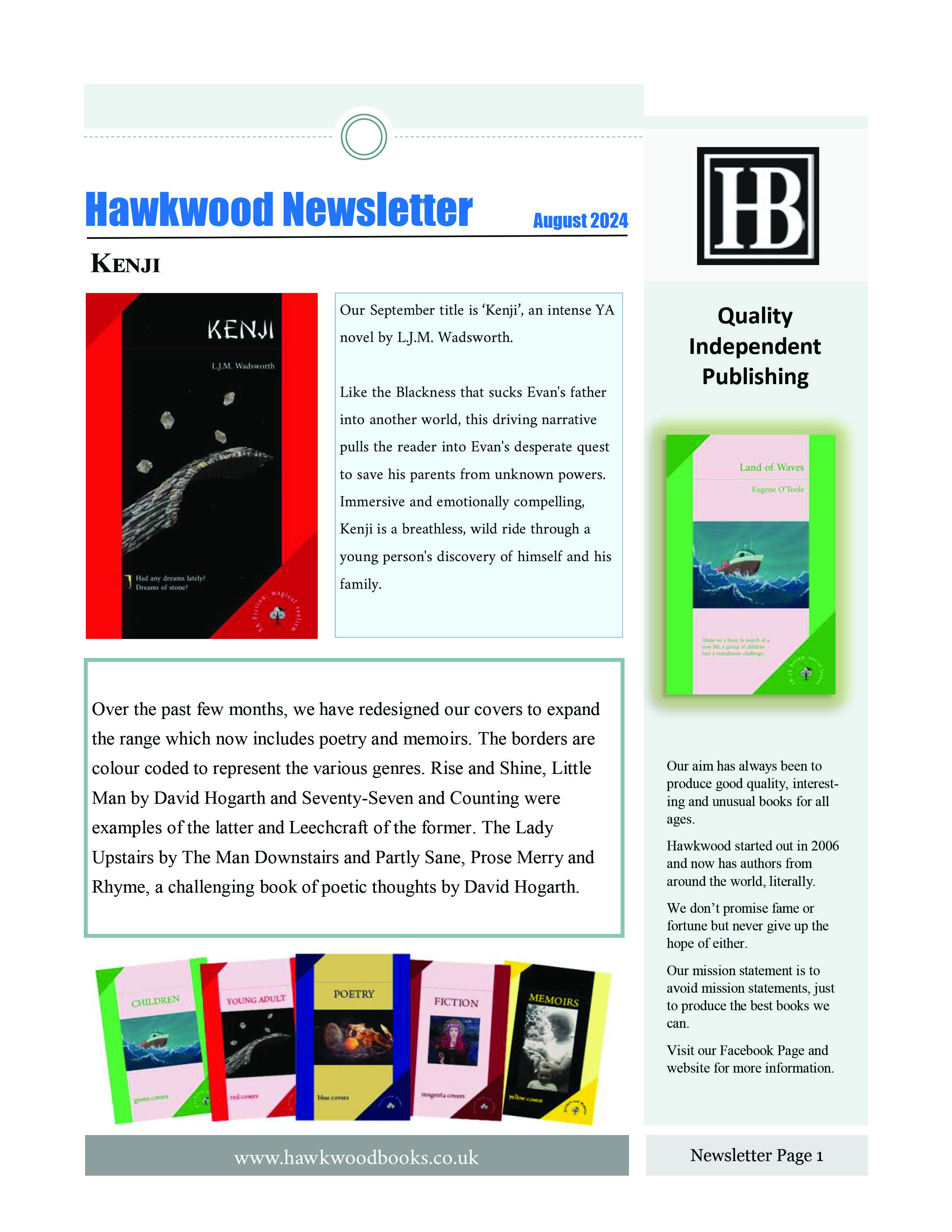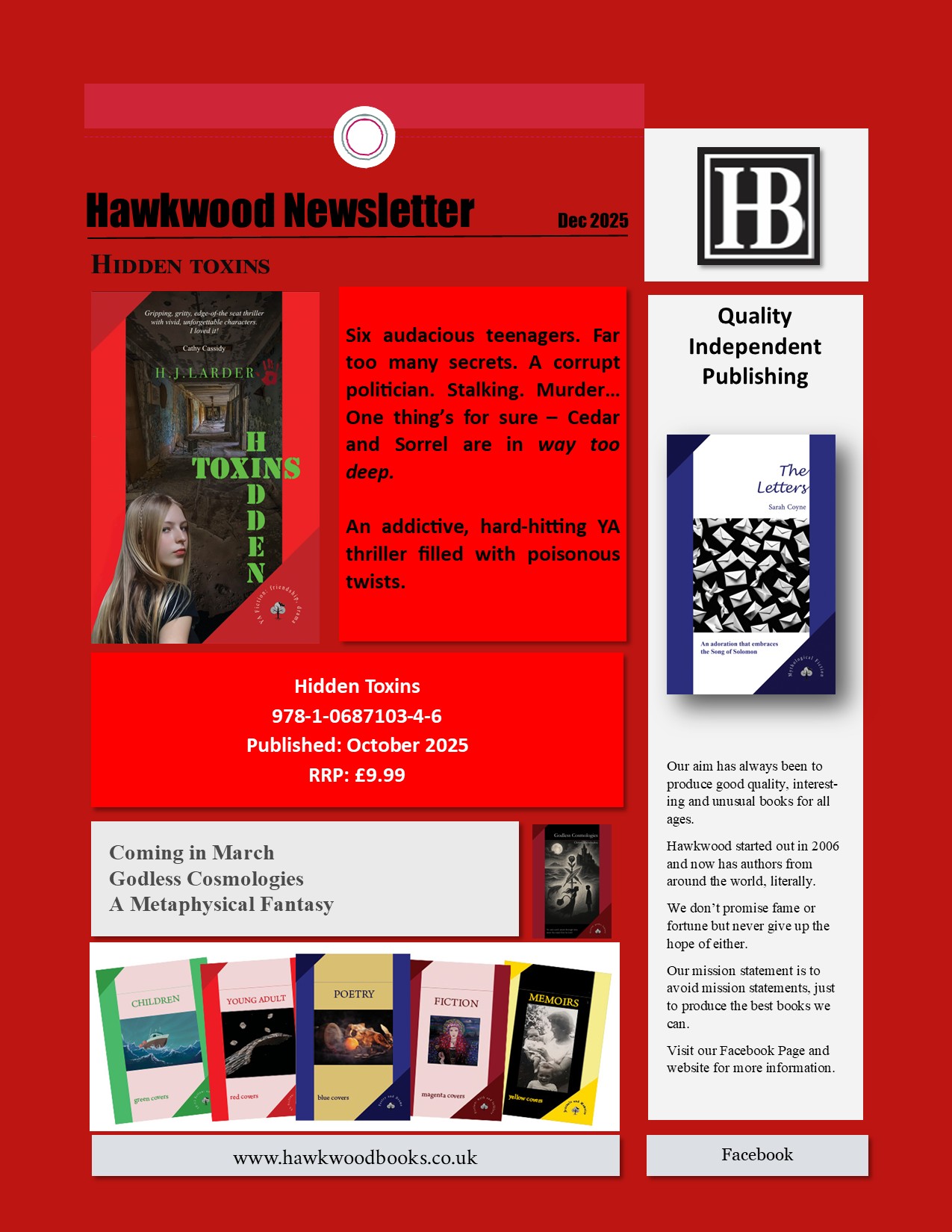 Most current news is now updated on the Hawkwood Books Facebook Page. We don't have Instagram or TikTok and even Facebook is a trial. We still have newsletters as and when appropriate. Some of these are shown below. There may also be some older, bordering on prehistoric, images in the media section. I would, of course, love to be announcing launches in the London Hilton, the O2 Arena or an international event or two, but those newsletters are yet to come. Thank you for looking. | ||||||