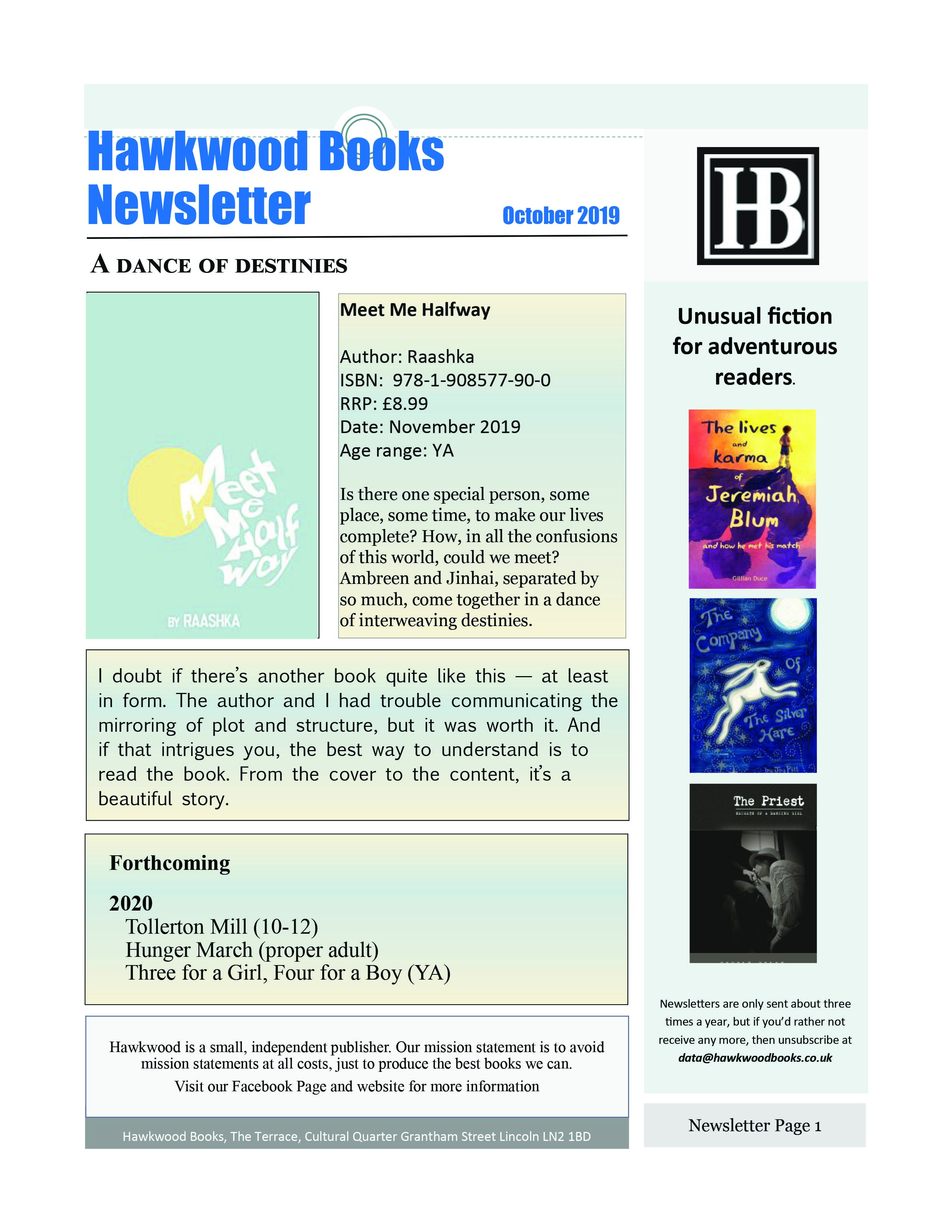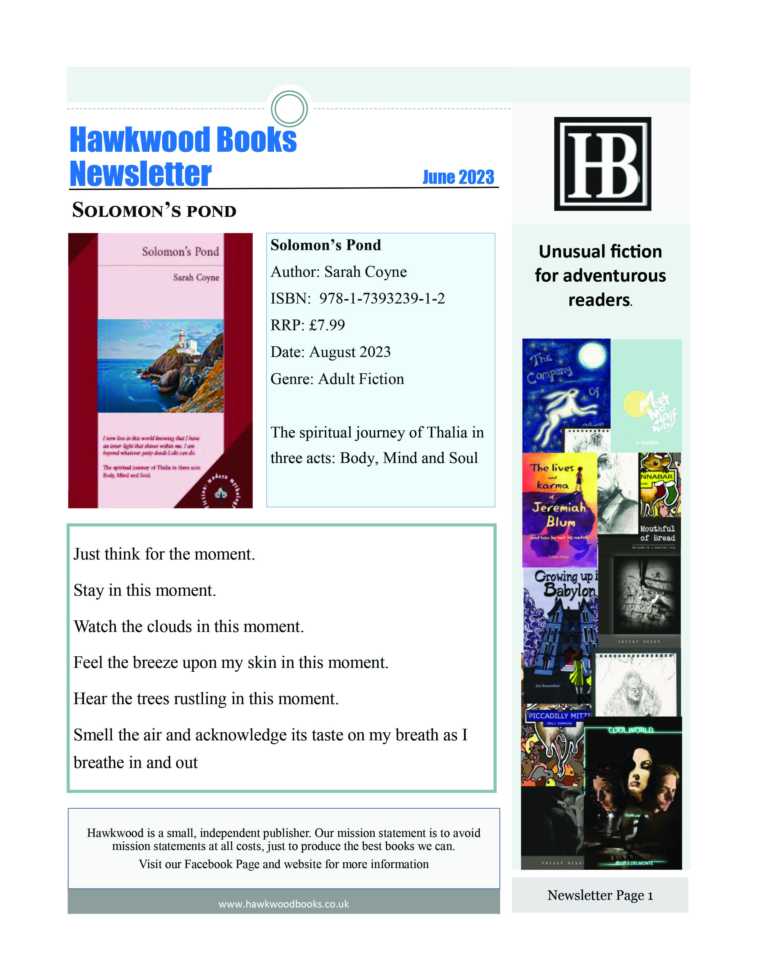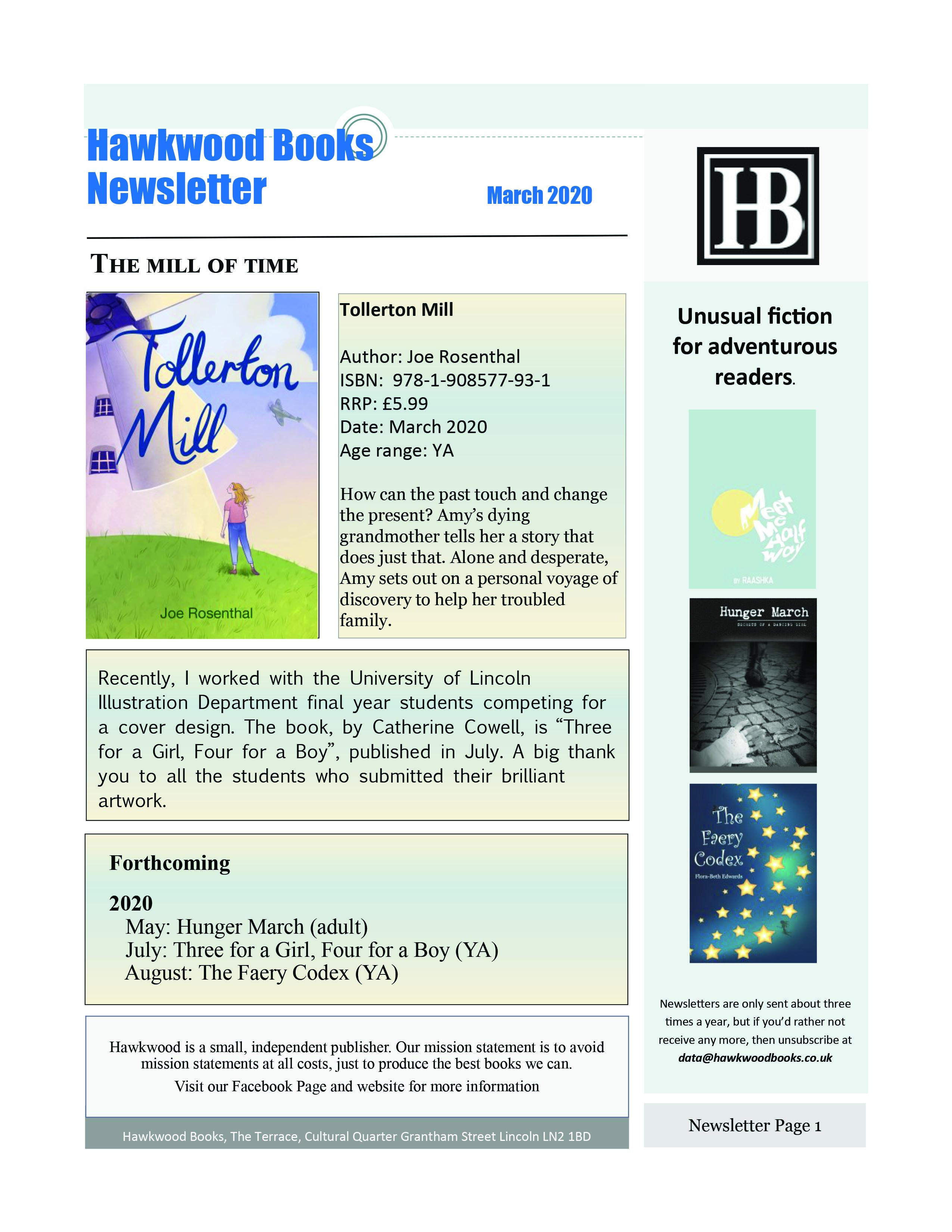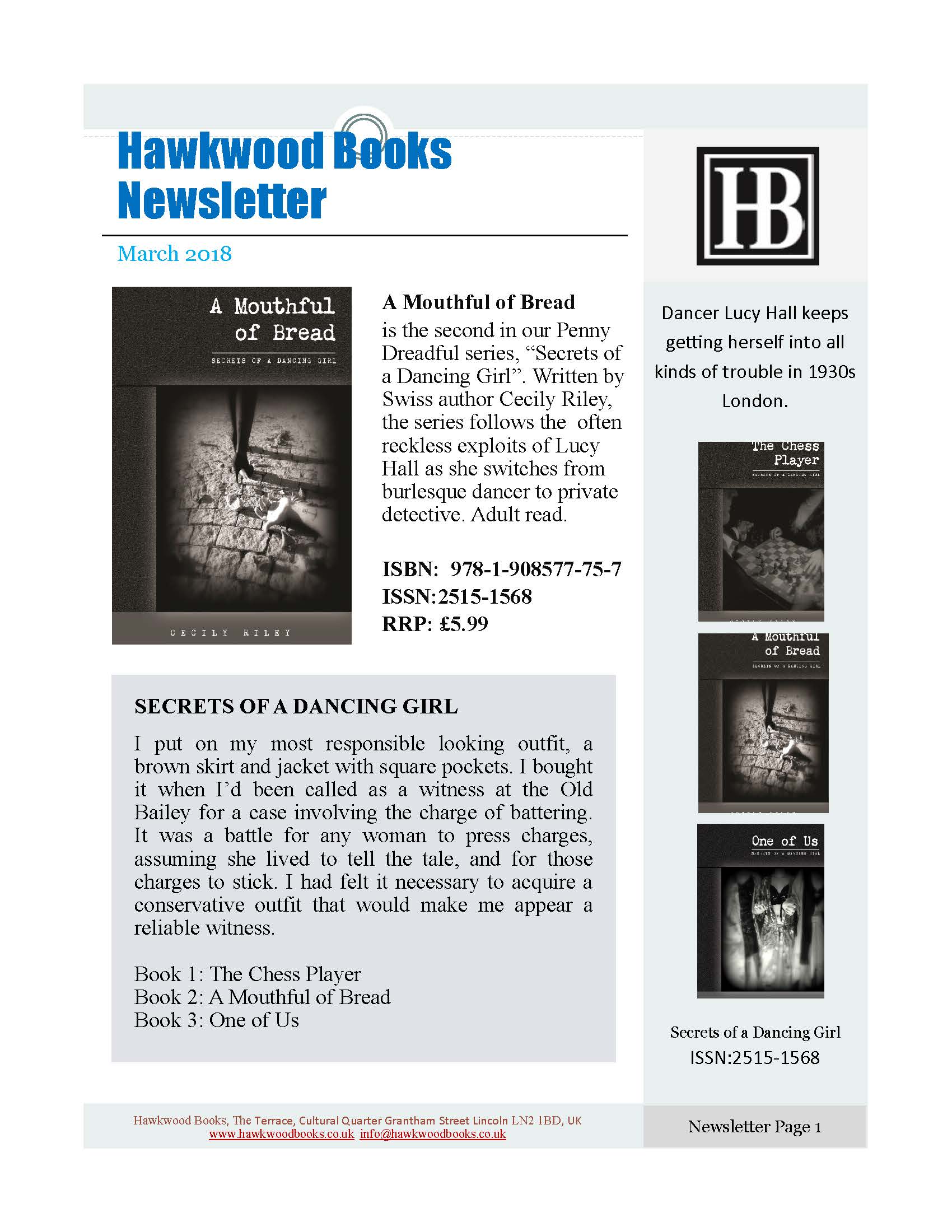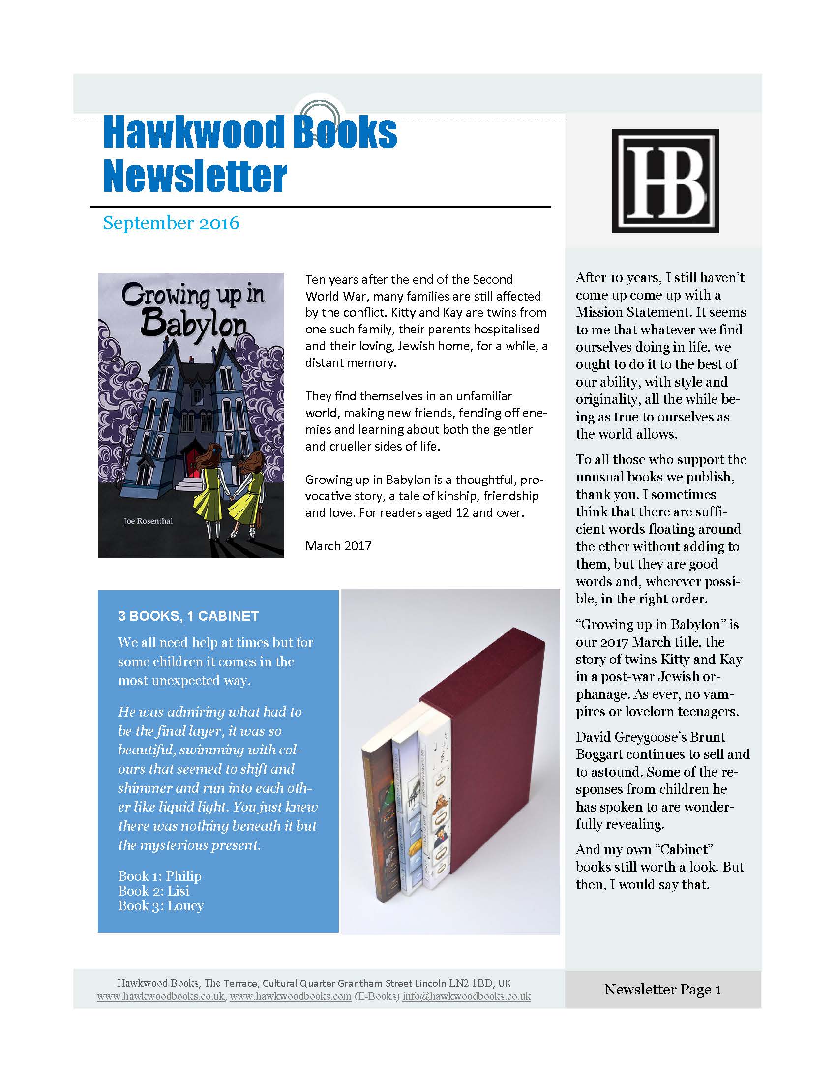 Most current news is now updated on the Hawkwood Books Facebook Page. We don't have Instagram or TikTok and even Facebook is a trial. We still have newsletters as and when appropriate. Some of these are shown below. There may also be some older, bordering on prehistoric, images in the media section. I would, of course, love to be announcing launches in the London Hilton, the O2 Arena or an international event or two, but those newsletters are yet to come. Thank you for looking. | ||||||